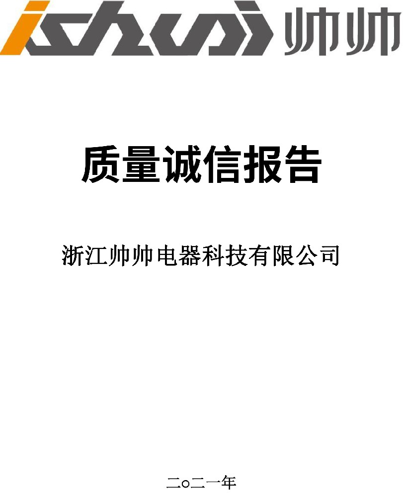 前 言一、報告編制規范《浙江帥帥電器科技有限公司的質量誠信報告》回顧了浙江帥帥電器科技有限公司在···